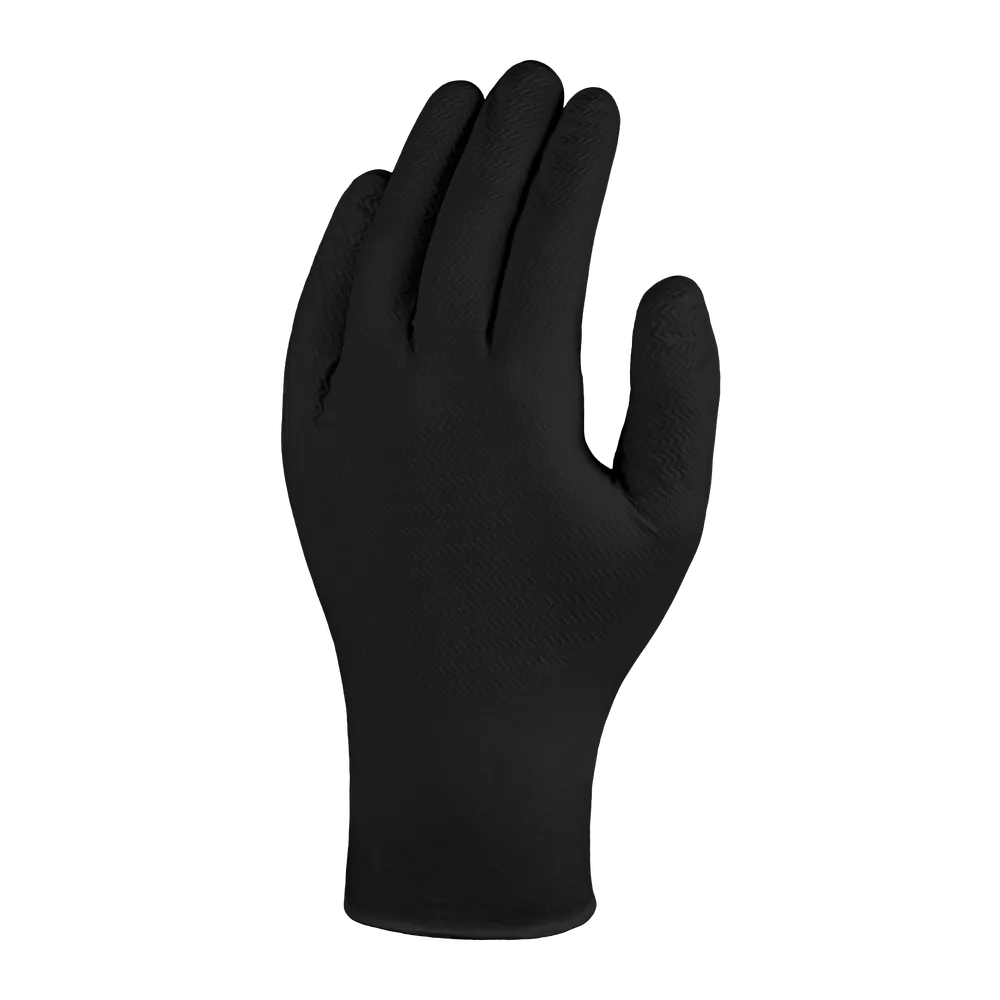 BLACK, SINGLE-USE GLOVE WITH GRIP PATTERN, 100% NITRILE, POWDER-FREE, 240MM LONG